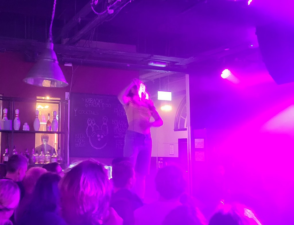 The lead singer of Lawn Chair is called Claudia. As a front person, she produced everything you would want. Firstly, she didn’t like to restrict herself to the stage, we know the stage at The Lanes isn’t massive, but her trips off the stage got the crowd involved. There’s a speaker stack and a bar, and tables all around the back of the performance area. Claudia climbed on them all, making full use of the available space. In terms of exuberance, Claudia scored a ten!